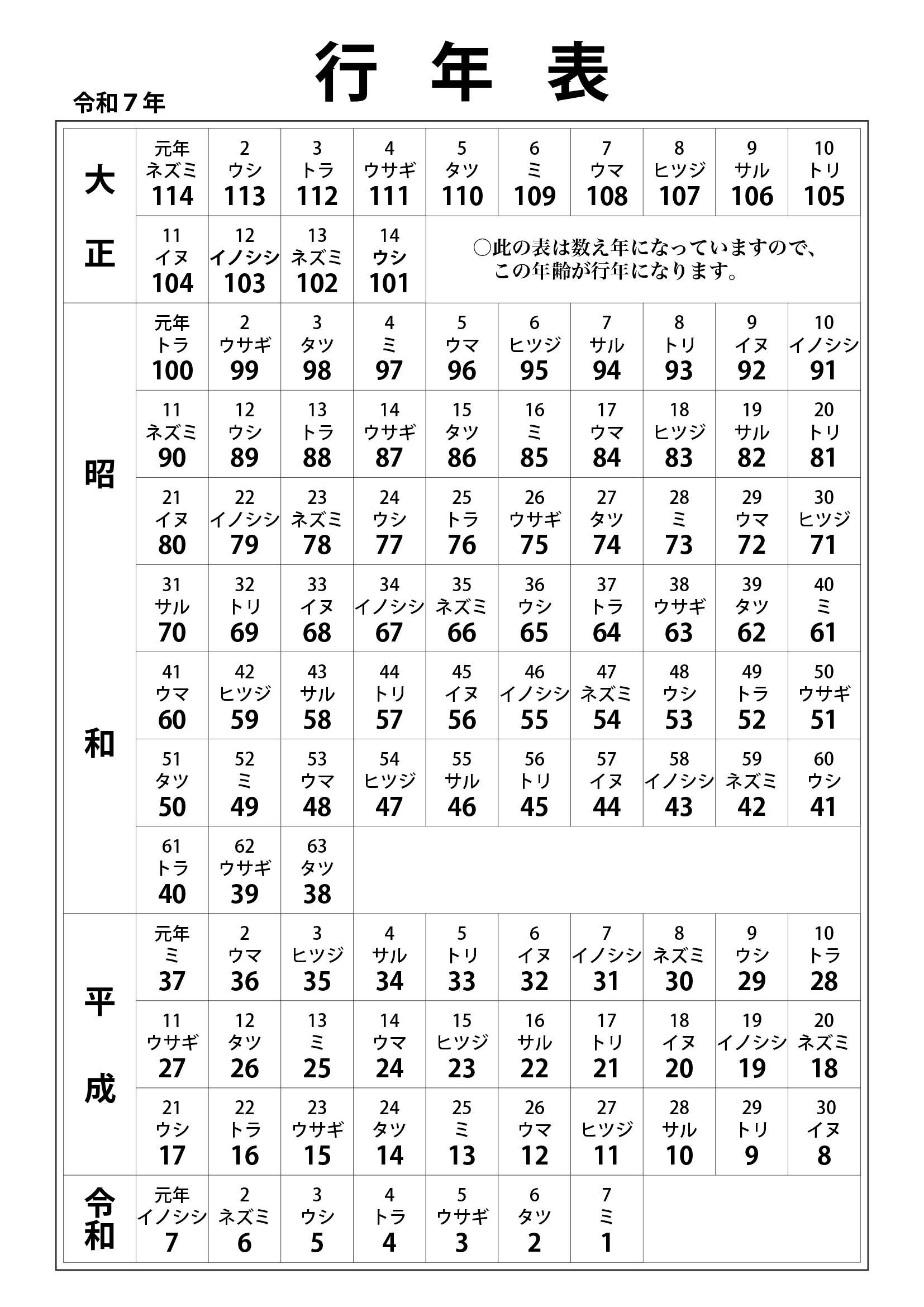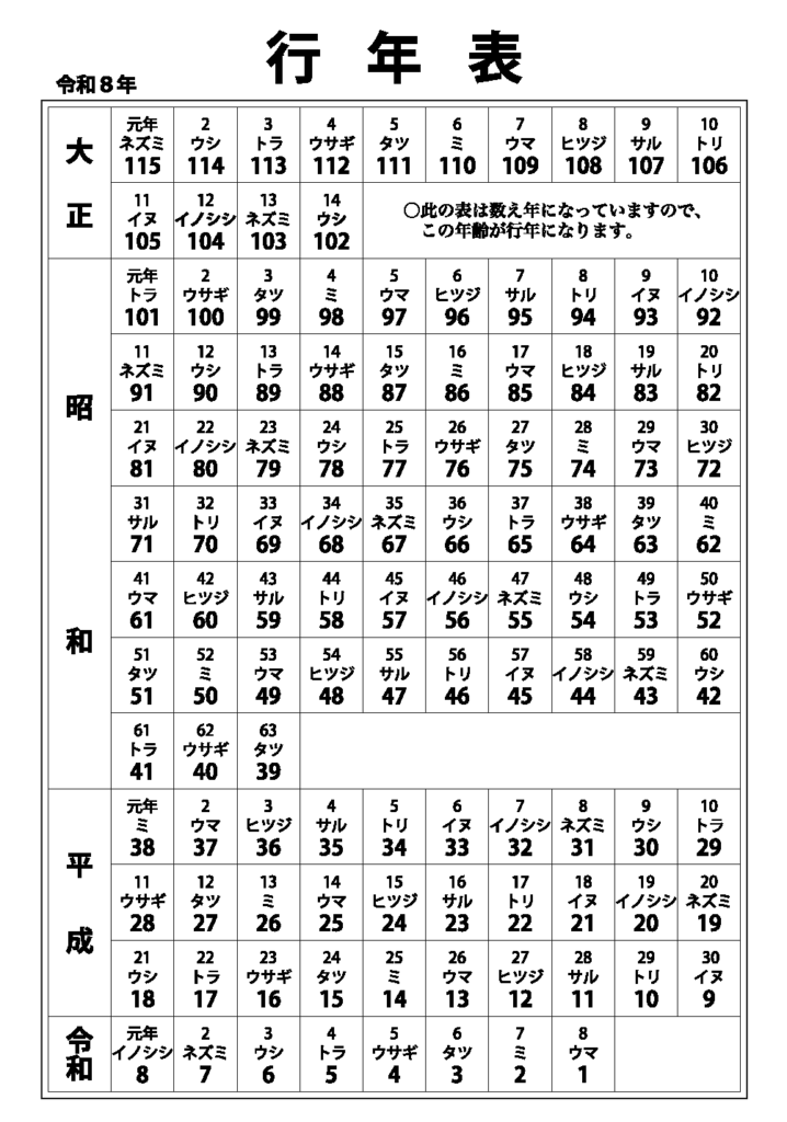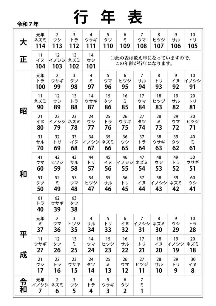/ 行年表・友引表