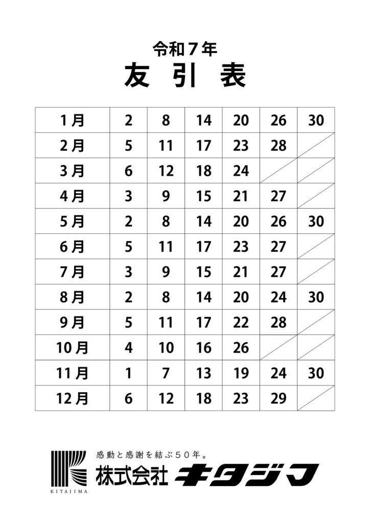 2025(令和7)年 友引表