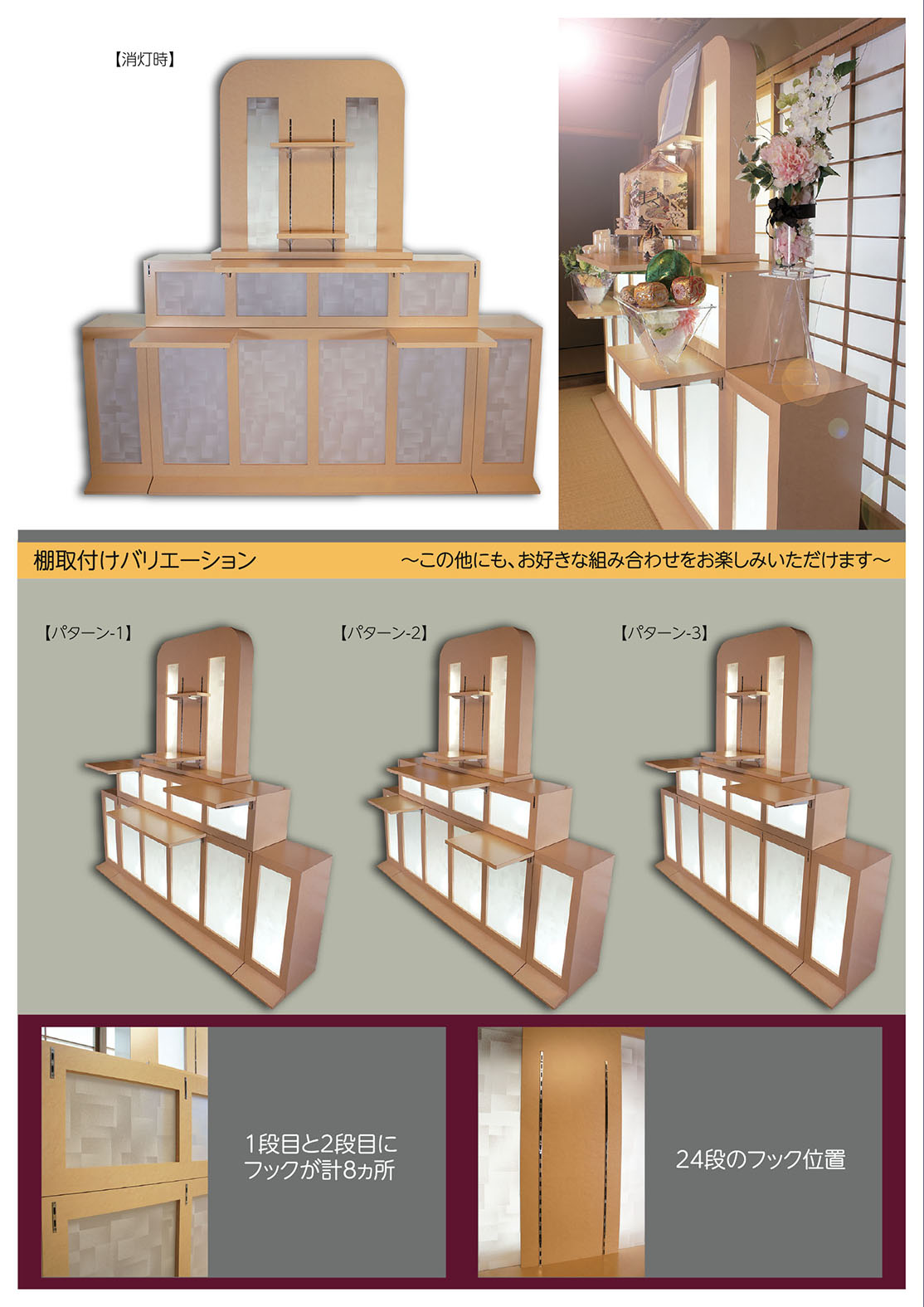 祭壇サイズ:(総巾)210㎝ × (総高さ)192.5㎝ × (奥行)30㎝