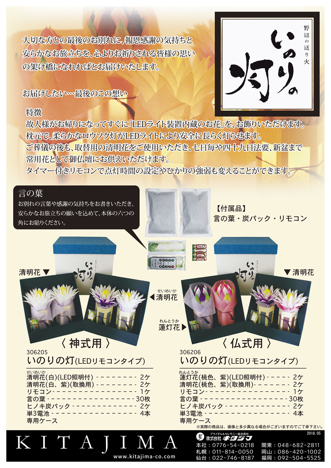 葬儀葬祭用品の販売キタジマより、2018年05月に発売する新商品を紹介します。