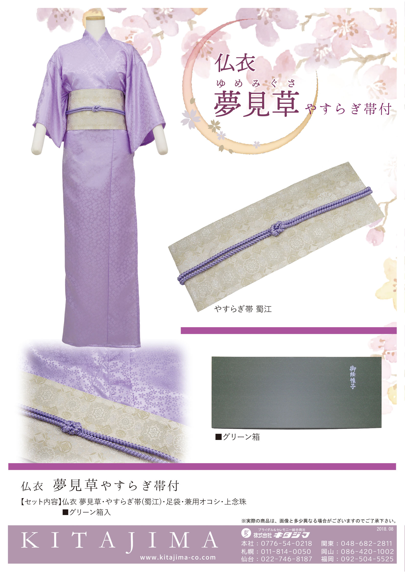7月新商品の仏衣 夢見草にやすらぎ帯をセットしました。