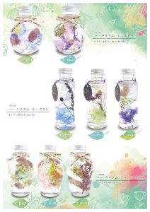 ボトルの中で優雅に漂うお花で心を癒されます。