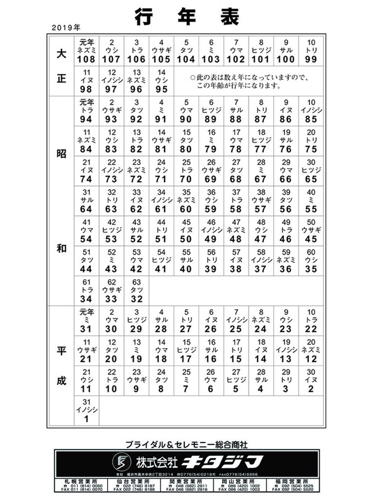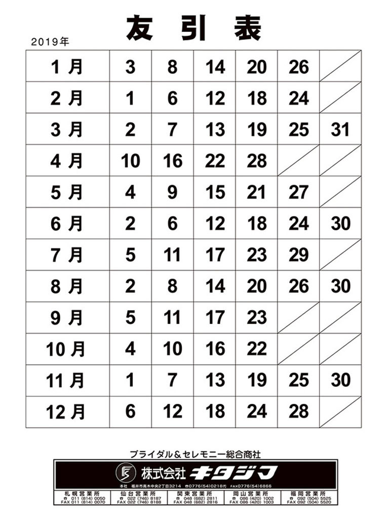 2018.12.01 友引表・行年表 2019年カレンダー用行年表・友引用 友引表 行年表(満年齢タイプ) ダウンロード ダウンロード 前の記事 2022年カレンダー用行年表・友引用 次の記事 平成30年カレンダー用行年表・友引用