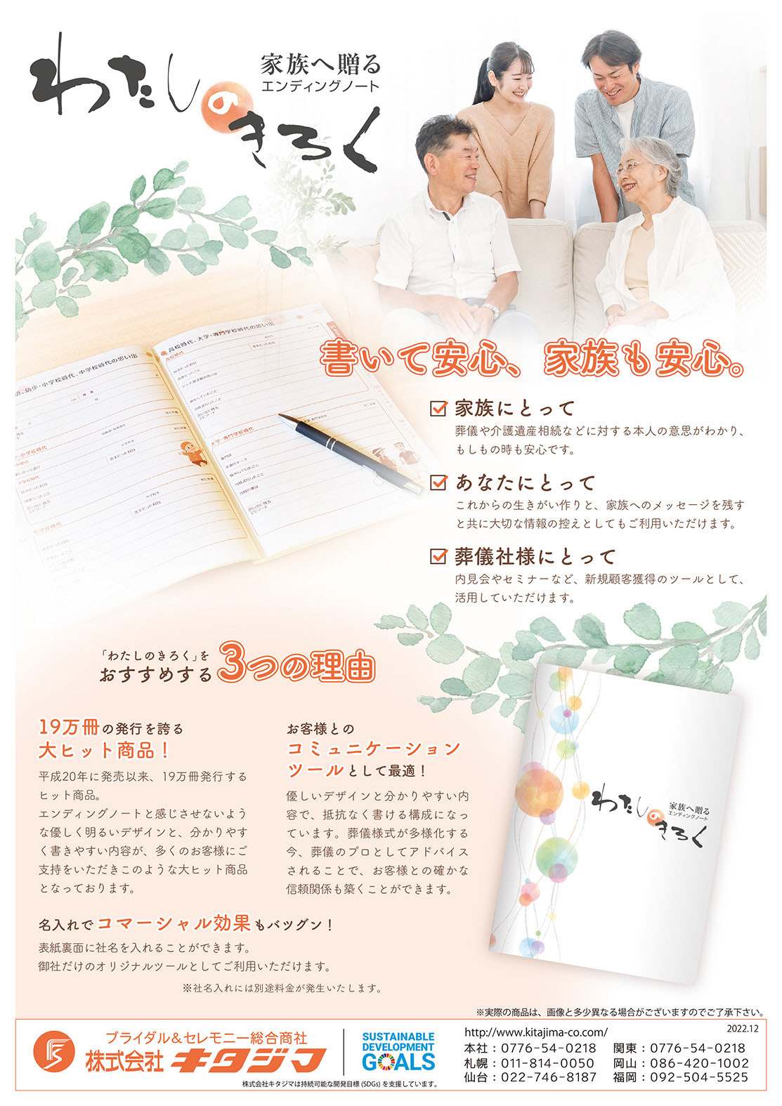 葬儀葬祭用品の販売キタジマより、2022年12月に発売した新商品を紹介します。