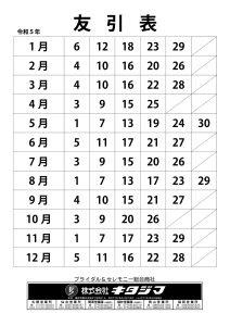 2022.09.08 友引表・行年表 2023年カレンダー用行年表・友引用 2023年カレンダー用行年表・友引用 友引表 ダウンロード 行年表(満年齢タイプ) ダウンロード 前の記事 2024年カレンダー用行年表・友引用 次の記事 2022年カレンダー用行年表・友引用