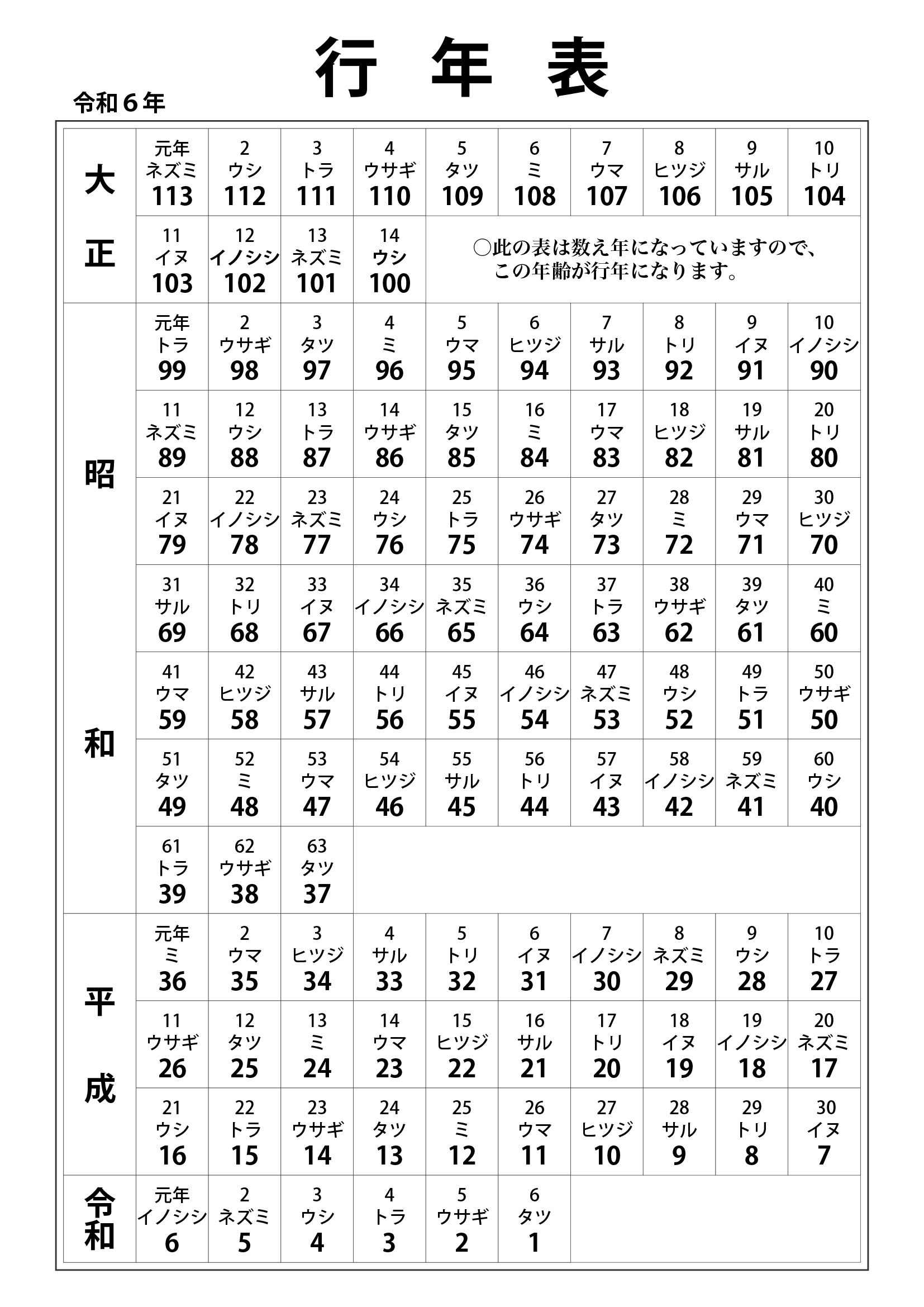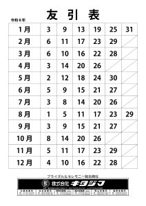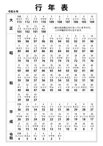 2023.09.22 友引表・行年表 2024年カレンダー用行年表・友引用 2024年カレンダー用行年表・友引用 友引表 ダウンロード 行年表(満年齢タイプ) ダウンロード 前の記事 2025年カレンダー用行年表・友引用 次の記事 2023年カレンダー用行年表・友引用